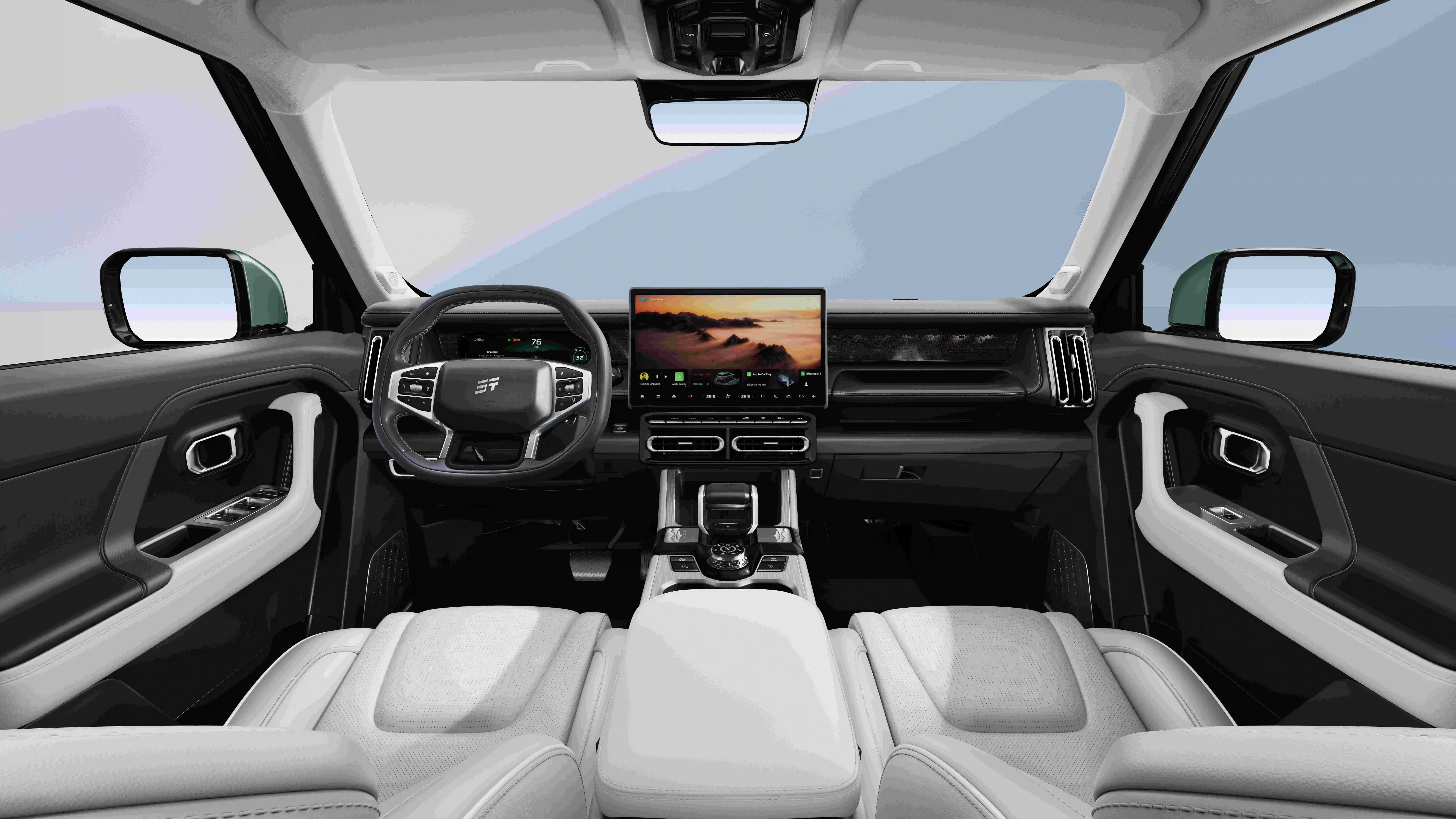 JETOUR T1 будет предлагаться в шести вариантах цвета кузова: белом, серебряном, золотом, матовом зеленом, синем и черном в сочетании с тремя цветами исполнения интерьера – серо‑черном, черно‑оранжевом и черно‑зеленом.